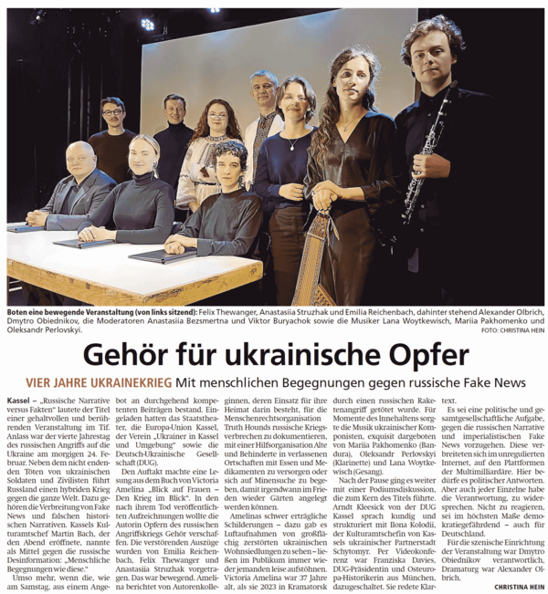 In Kooperation mit der Europa-Union Kassel, dem Ukrainer in Kassel und Umgebung e. V. i. G und der Deutsch-Ukrainischen Gesellschaft.