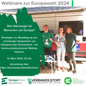 Die Europa-Union Deutschland (EUD) ist die größte Bürgerinitiative für Europa in Deutschland. Unabhängig von Parteizugehörigkeit, Alter und Beruf engagieren wir uns für die europäische Einigung. Wir sind aktiv auf lokaler, regionaler, nationaler und europäischer Ebene. Rund 17.000 Mitglieder sind in 16 Landesverbänden mit rund 300 Kreis-, Orts- und Stadtverbänden vernetzt und haben Partnerorganisationen in über 30 Ländern Europas.