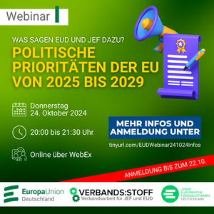 Die Europa-Union Deutschland (EUD) ist die größte Bürgerinitiative für Europa in Deutschland. Unabhängig von Parteizugehörigkeit, Alter und Beruf engagieren wir uns für die europäische Einigung. Wir sind aktiv auf lokaler, regionaler, nationaler und europäischer Ebene. Rund 17.000 Mitglieder sind in 16 Landesverbänden mit rund 300 Kreis-, Orts- und Stadtverbänden vernetzt und haben Partnerorganisationen in über 30 Ländern Europas.